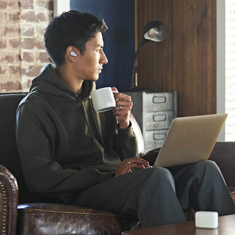 さらに、音楽を聴きながら仕事や作業に集中したいときにもノイズキャンセリング機能が役立ちます。また、楽曲を再生せず機能をONにすれば、デジタル耳栓として活用することができます 。