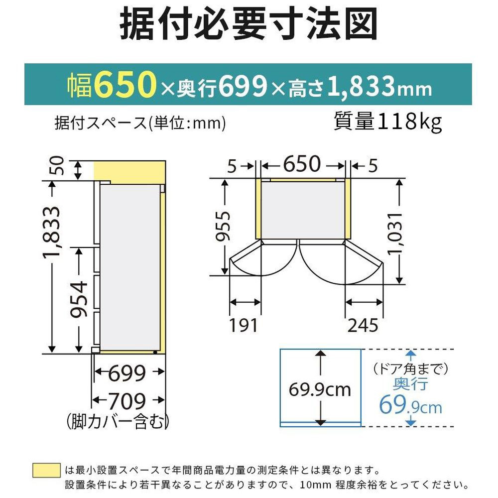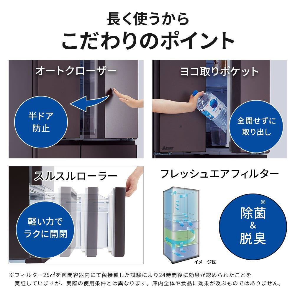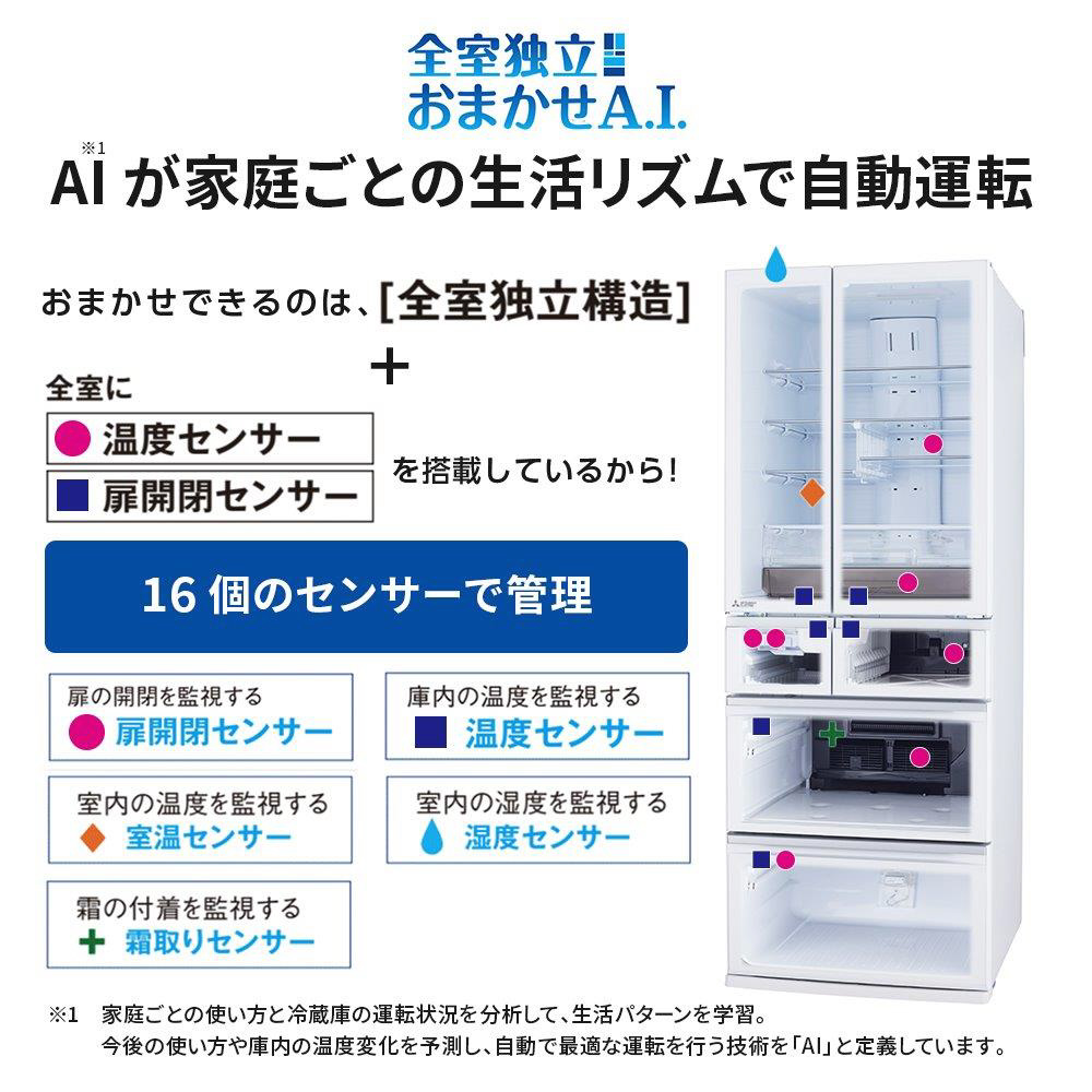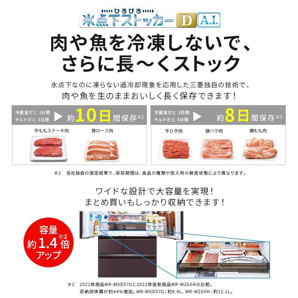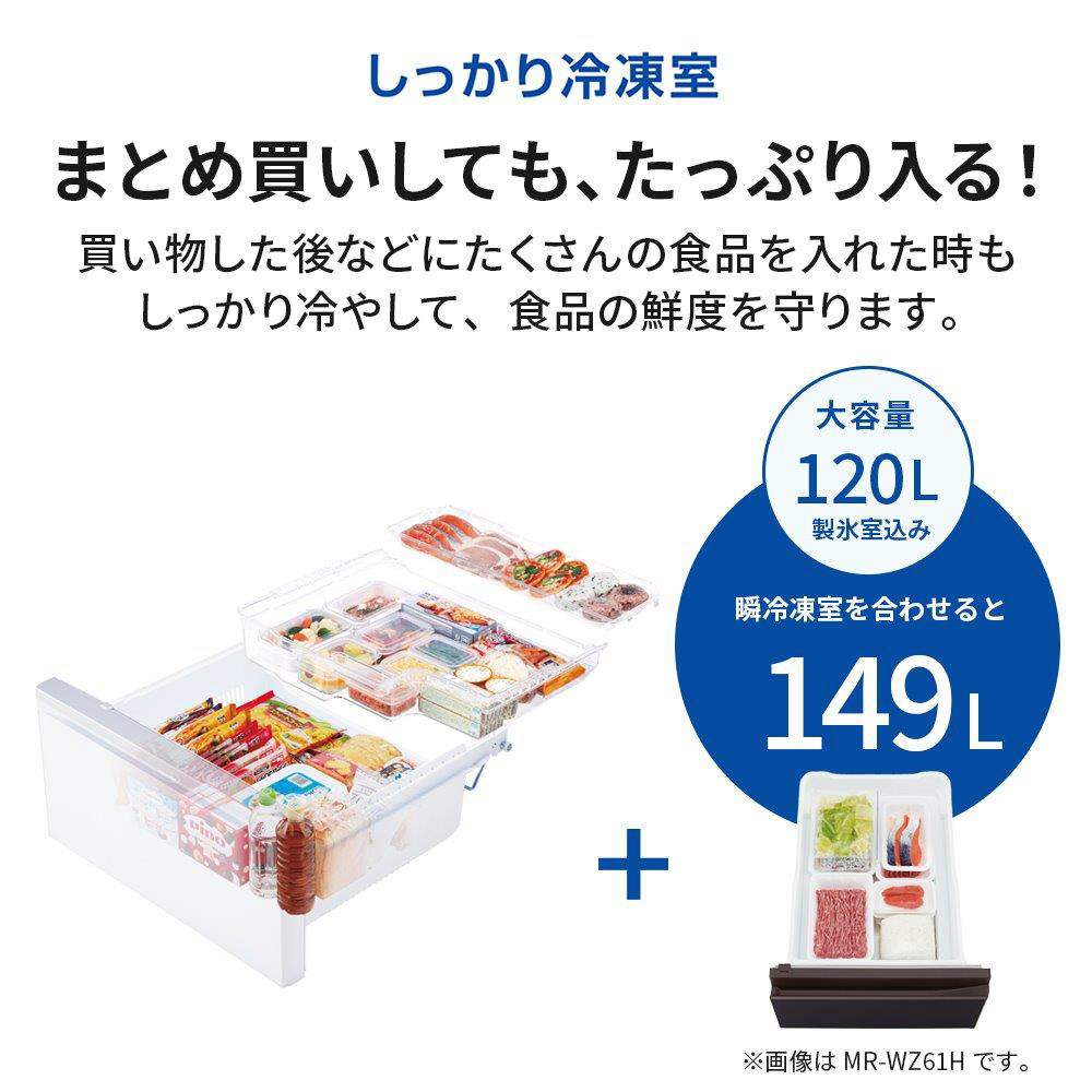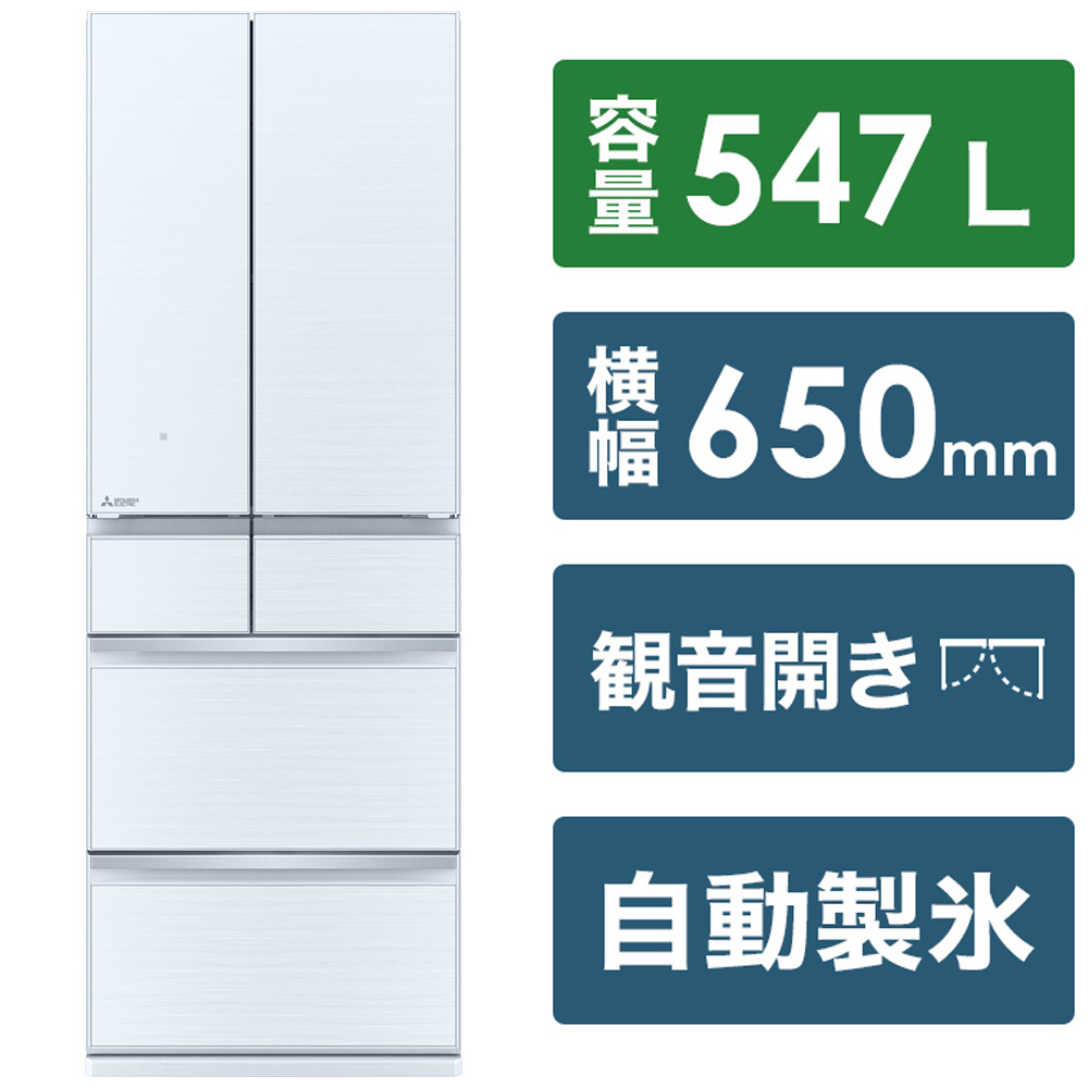 冷蔵庫 中だけひろびろ大容量 WZシリーズ クリスタルホワイト MR-WZ55H-W [547L /6ドア /観音開きタイプ] 【基本設置料金セット】