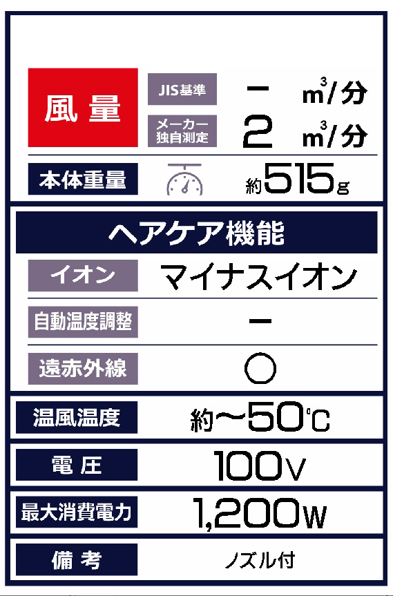 マイナスイオン搭載で、静電気を抑制し髪がよりまとまる髪に優しいイオンドライヤーです。
