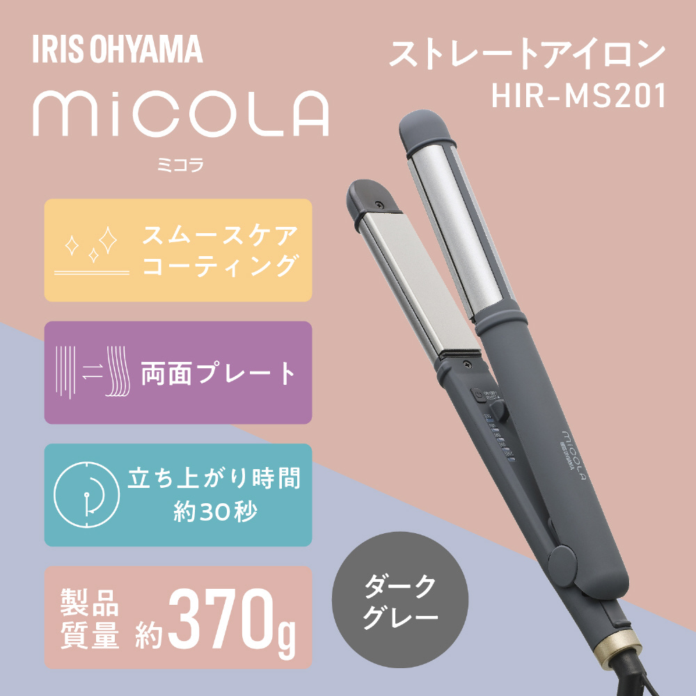 | 商品名 | ヘアアイロン 2WAY ストレート&カール micola(ミコラ) ダークグレー HIR-MS201-H [交流(コード)式] |