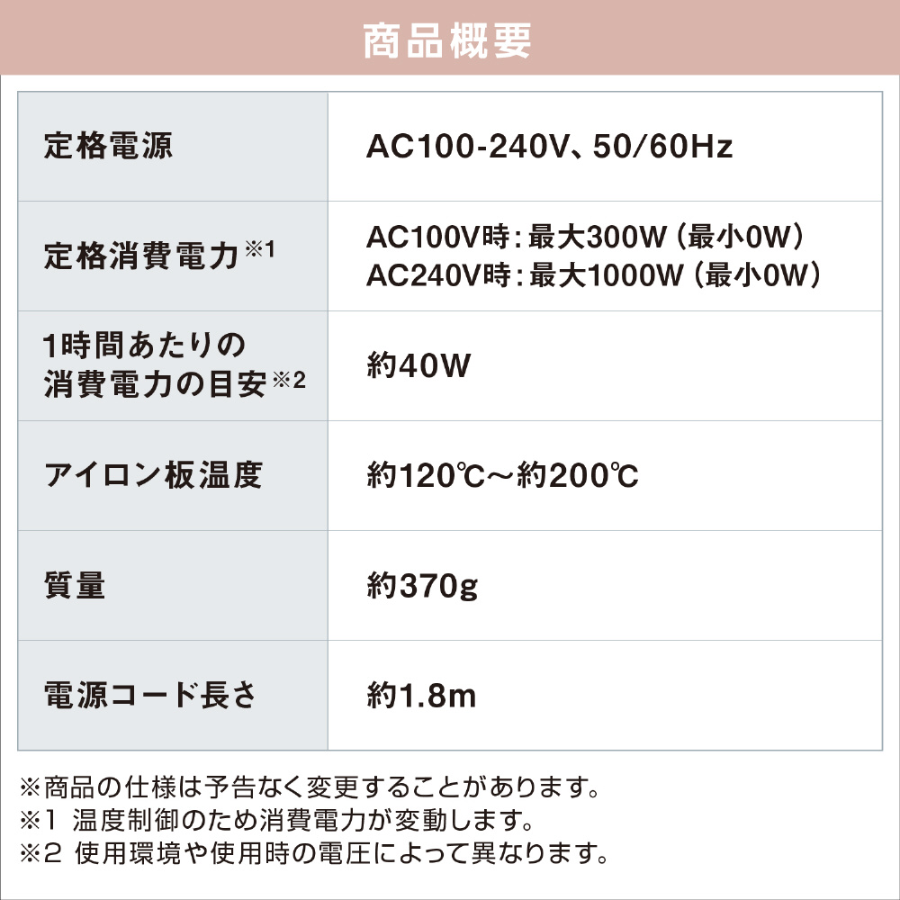 | 使用可能電圧 | AC100-240V |