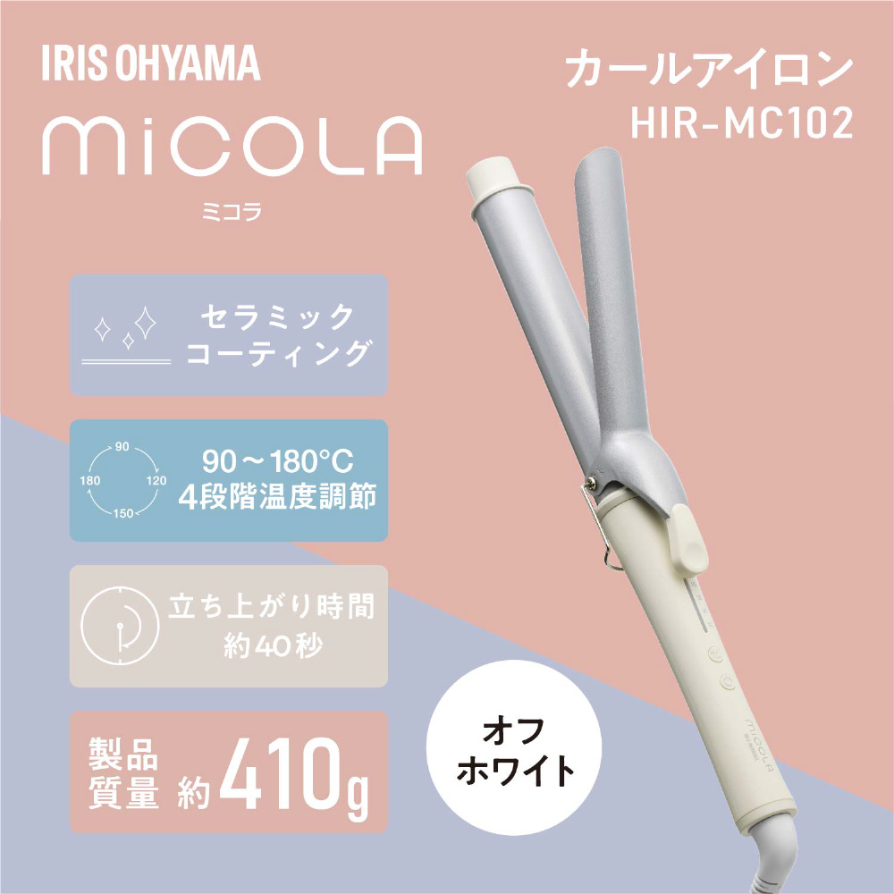 | 商品名 | カールアイロン ヘアアイロン コテ(32mm) micola(ミコラ) オフホワイト HIR-MC102-W [32mm /交流(コード)式] |