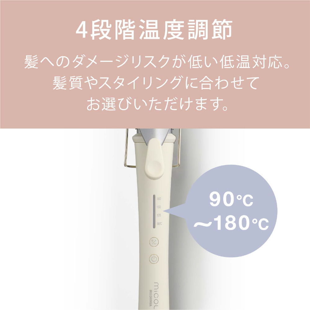 ■4段階の温度調節(90・120・150・180℃)が可能なので、髪質に合わせてお好みのスタイリングに。