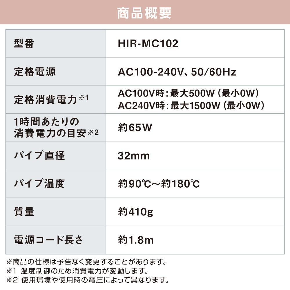 | 型番 | HIRMC102W |