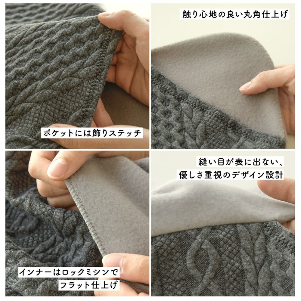 ■角丸のやさしいフォルムと縫い目の出ないデザインで、癒されながら温かく。