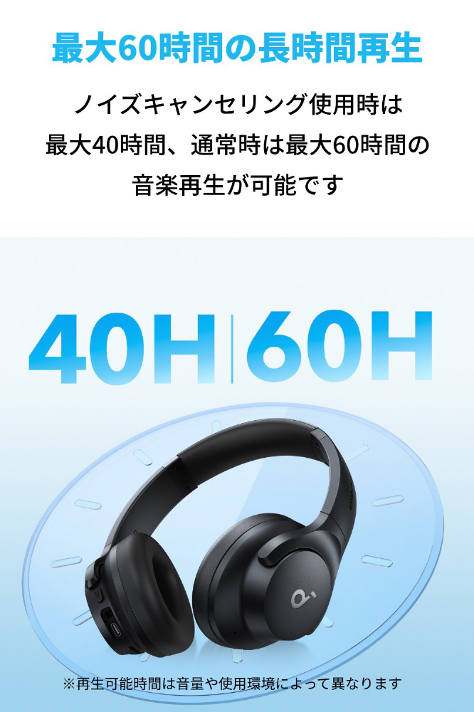 ブルートゥースヘッドホン Soundcore Q20i ブラック A3004Z11 [ノイズキャンセリング対応 /Bluetooth対応]
