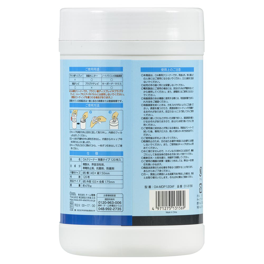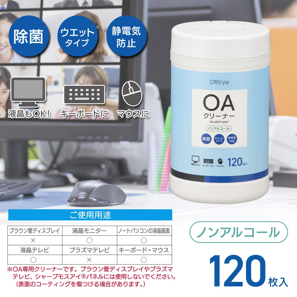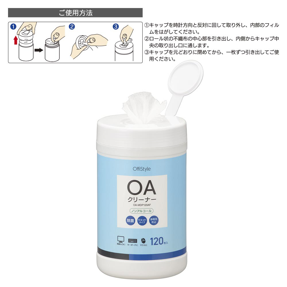 OAクリーナー [140x150mm /120枚] 除菌タイプ OffiStyle OA-MDP120AF