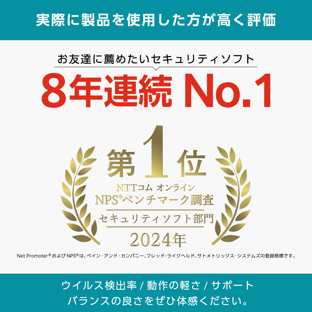 ・本製品(サポートサービス契約期間)にはプログラムおよび検出エンジンのアップデート権利が付属しています。ユーザー登録(必須)をおこなうことで、インターネットを通じていつでも最新のセキュリティ状態を保つことができます。