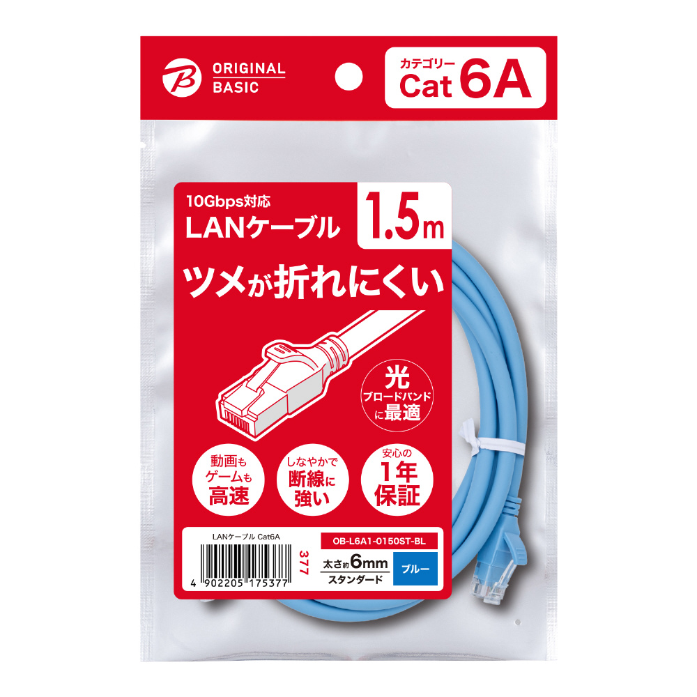 OB-L6A1-0150ST-BL LANケーブル ブルー [1.5m /カテゴリー6A /スタンダード] 【852】