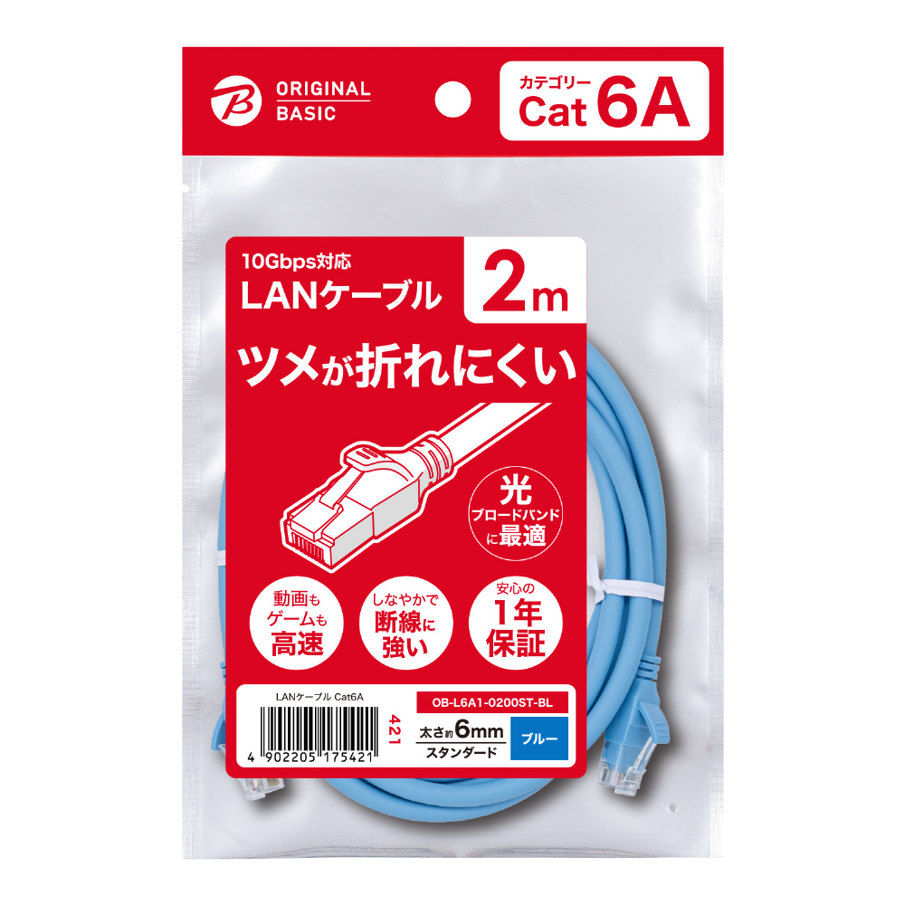OB-L6A1-0200ST-BL LANケーブル ブルー [2m /カテゴリー6A /スタンダード]