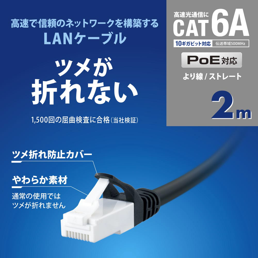 | 商品名 | PC-N6A20-K LANケーブル PoE対応 [2m /カテゴリー6A /スタンダード] |