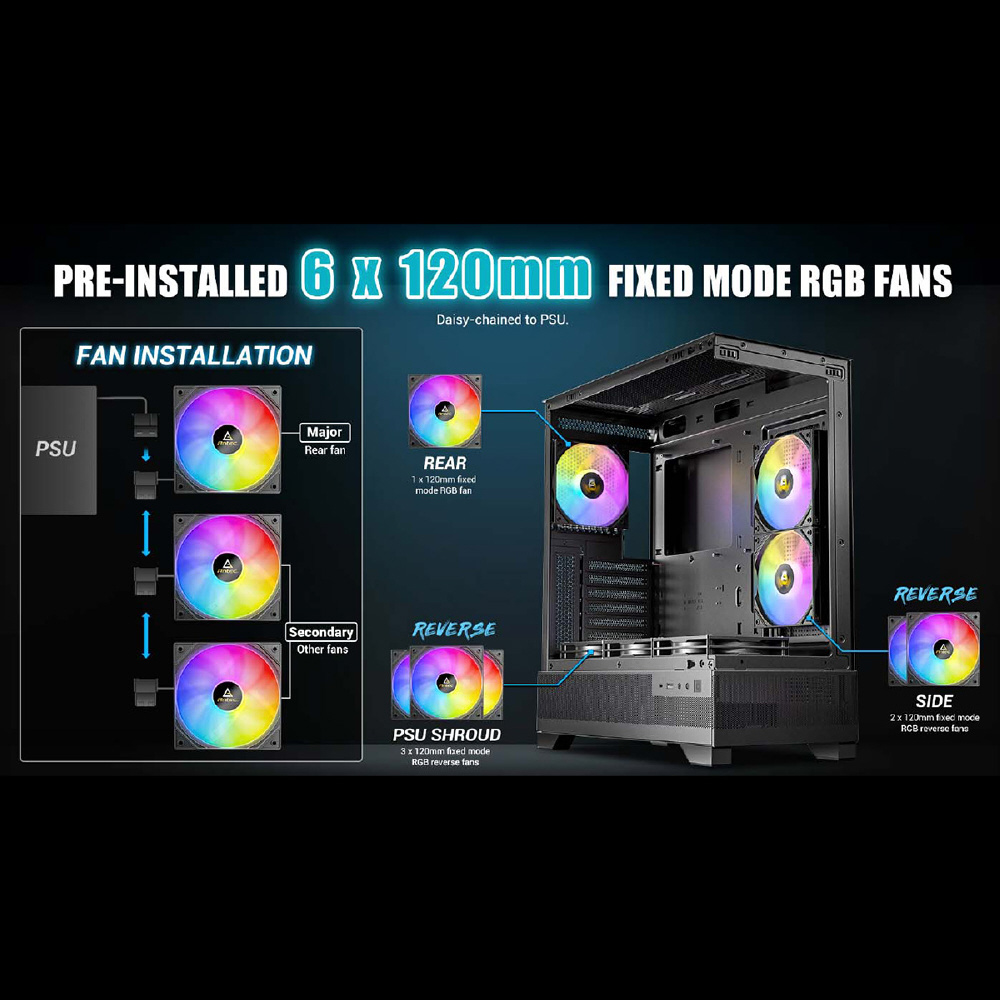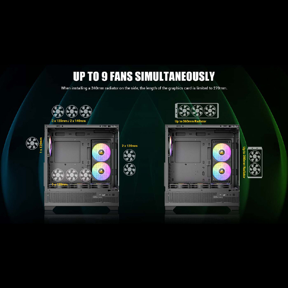 RGBファン6個標準搭載のATX対応ミドルタワーケース