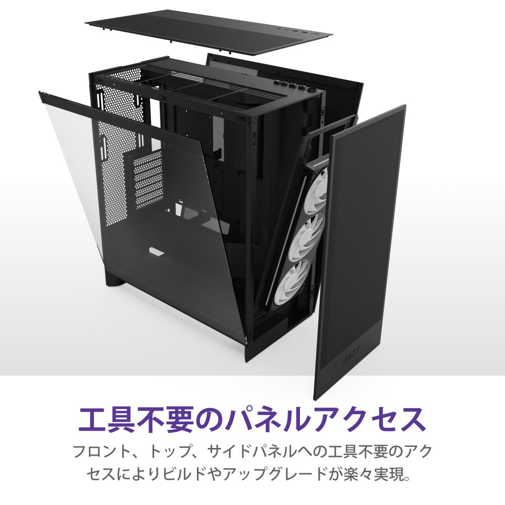 フロント、トップ、サイドパネルが全てアタッチメント式になっており、取り付け、取り外しに工具が不要で内部へのアクセスが簡単です。