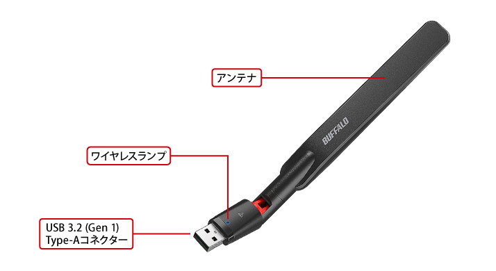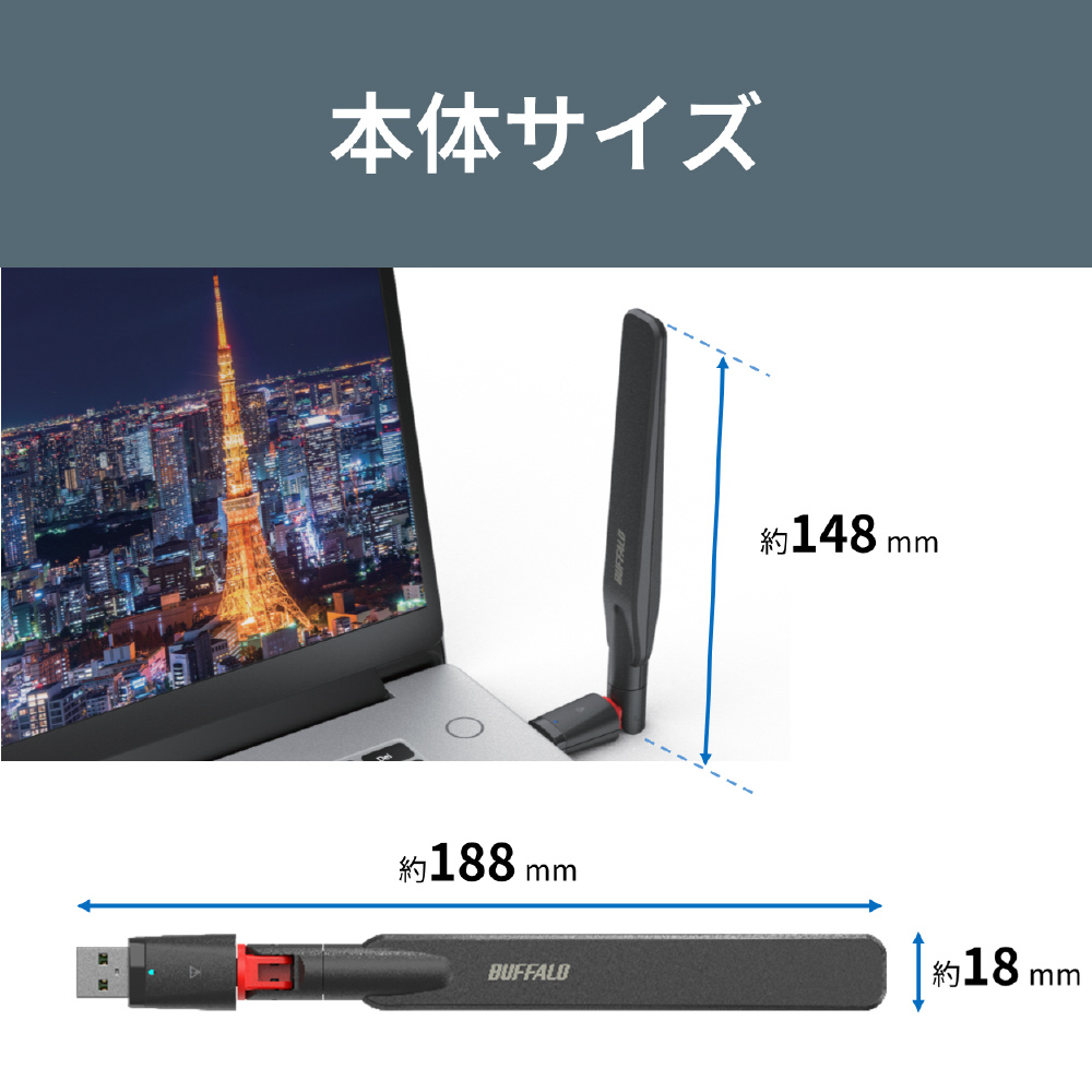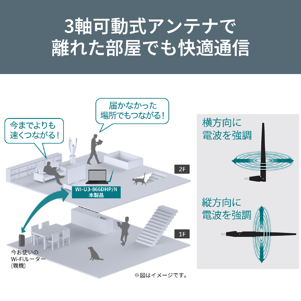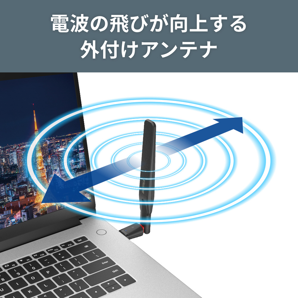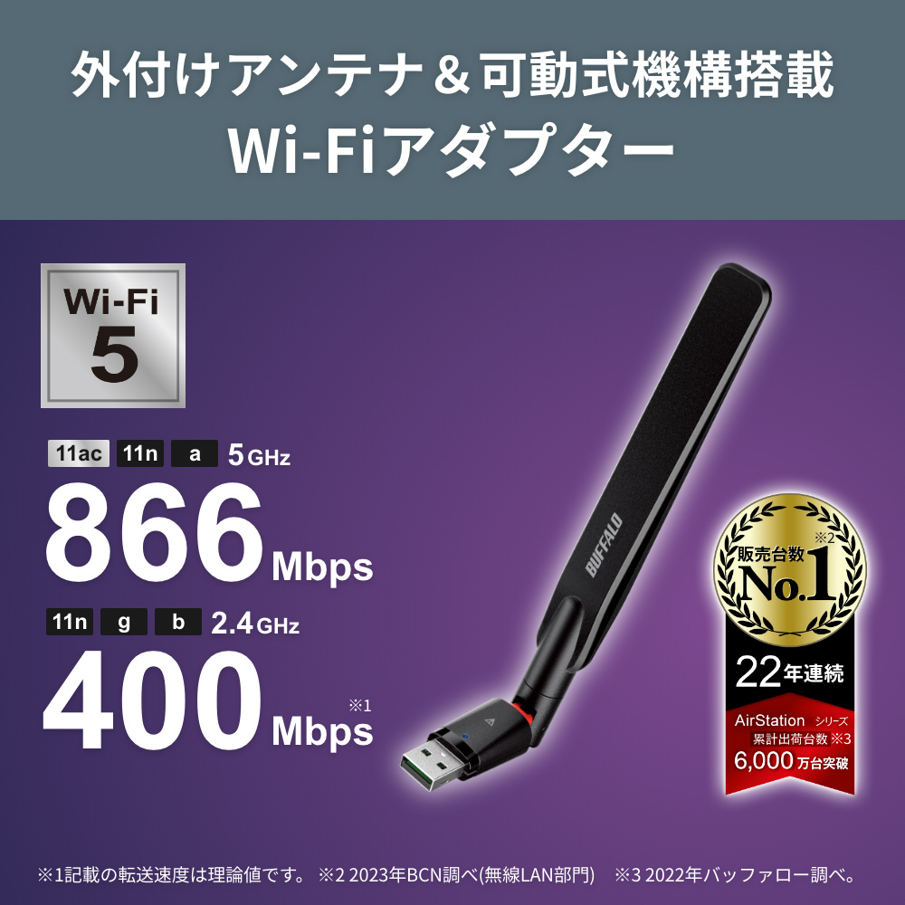 「Wi-Fiアダプター 11ac 866/300Mbps USB3.2(Gen1)/2.0用 AirStation ハイパワー」