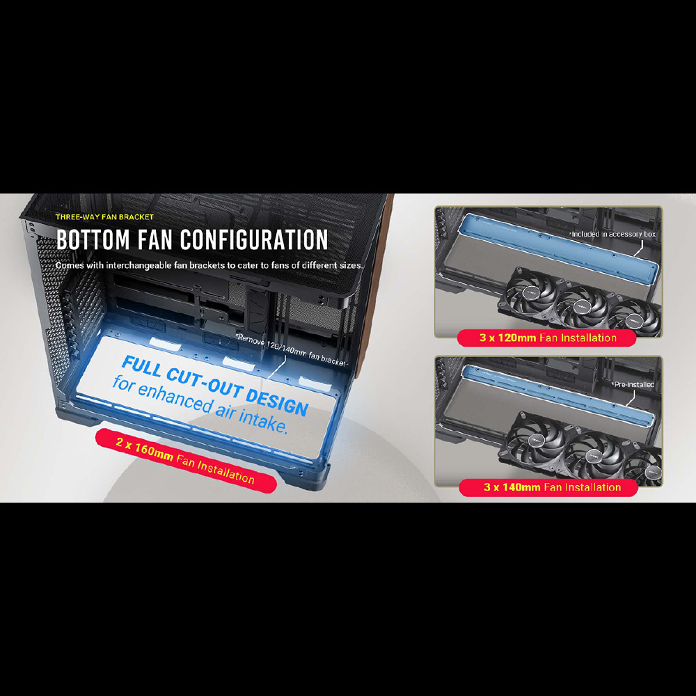 前面と側面がカーブした一体型強化ガラスパネル搭載 冷却型フルタワーPCケース