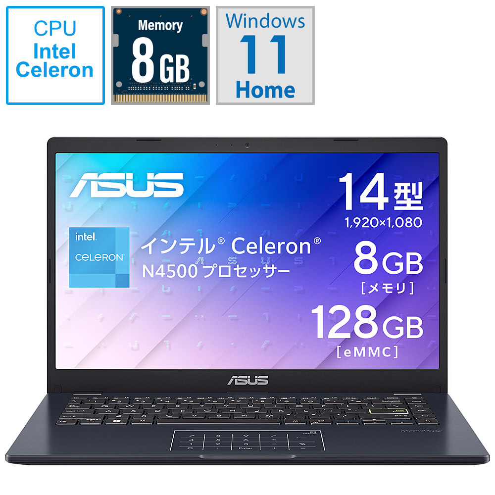 ノートパソコン Vivobook Go 14 スターブラック E410KA-EK844W [14.0型 /Windows11 S /intel Celeron /メモリ:8GB /eMMC:128GB /WPS Office /日本語版キーボード /2025年2月モデル] 【sof001】