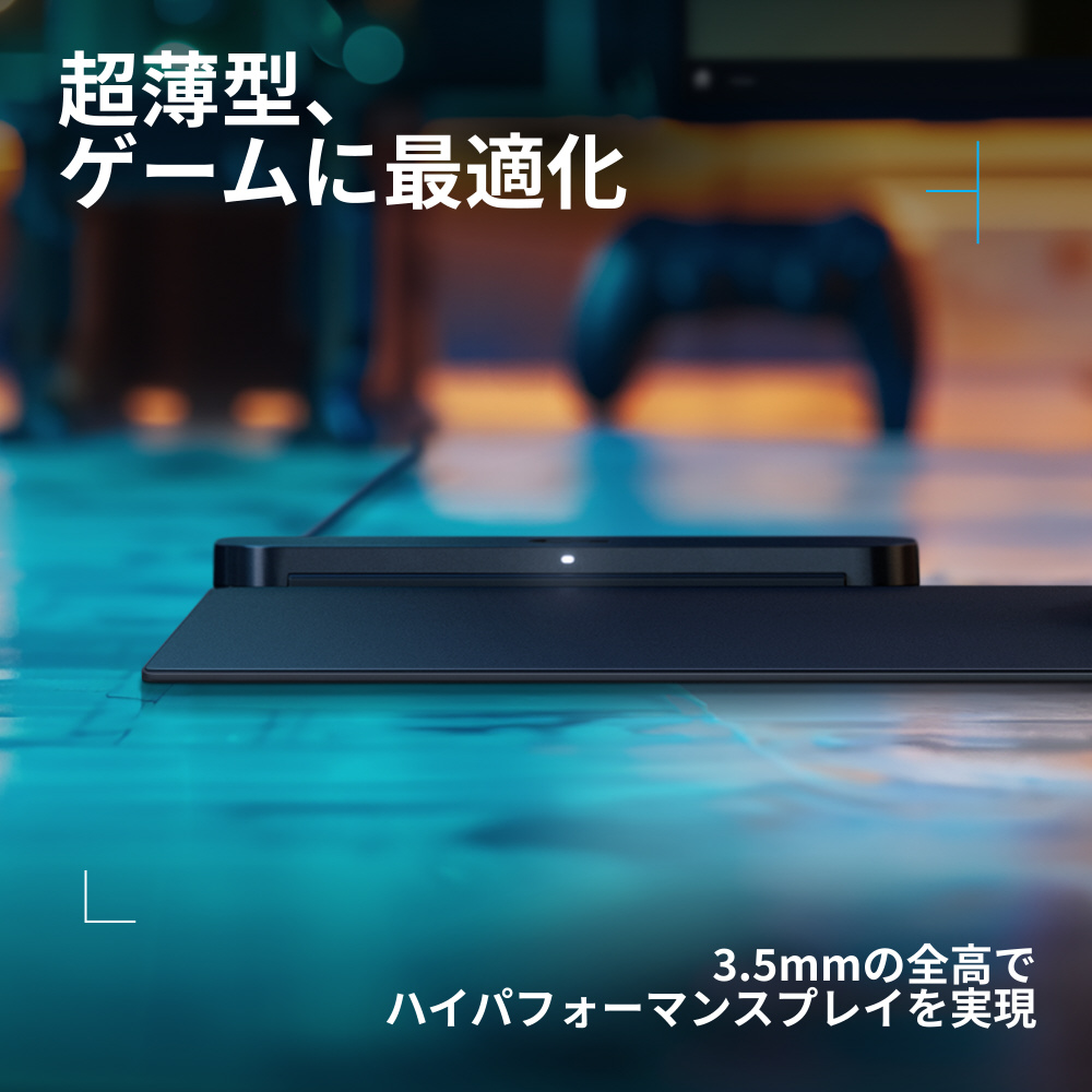 ■厚さ3.5 mm*の薄型マウスパッドを採用。スリムなデザインで、自由自在かつ軽やかなプレイを実現