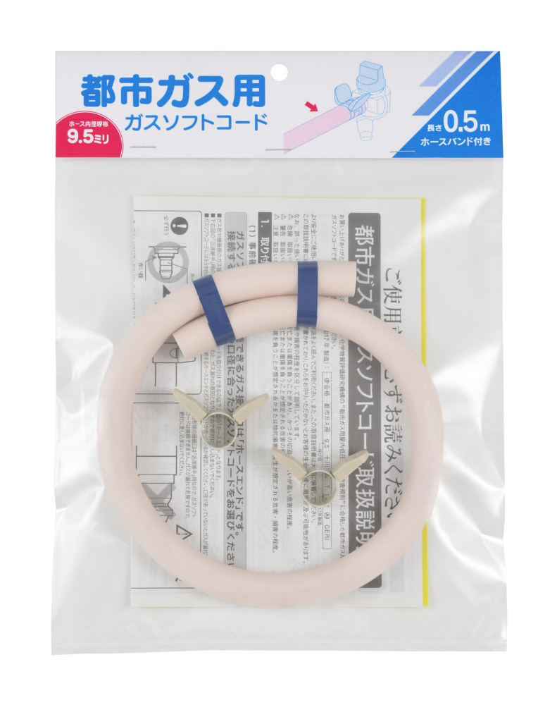ガスソフトコードФ9.5(都市ガス用・0.5m) カクダイ 440-100-005