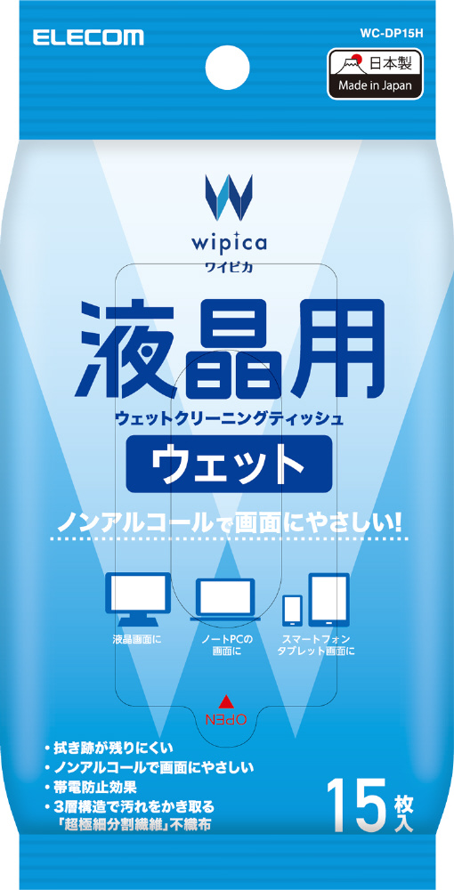| 商品名 | ウェットクリーニングティッシュ [150x140mm /15枚 /ハンディタイプ] 液晶用 WC-DP15H |