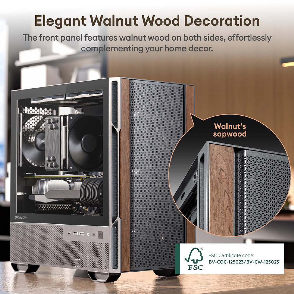 ファン4個標準搭載、本物のウォルナット材を使用したMicro-ATX対応ミドルタワーケース
