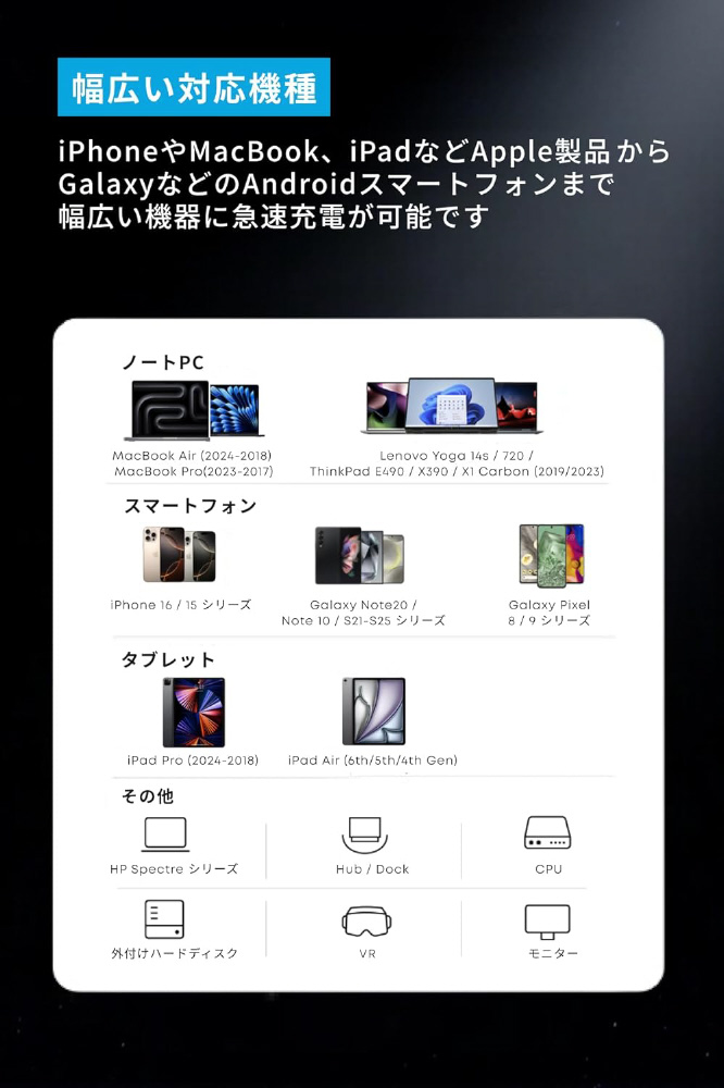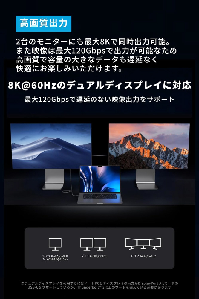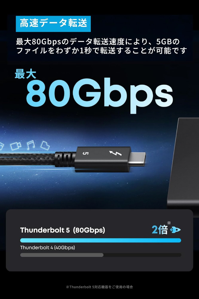 高速データ転送やフルスピード充電高画質出力が可能なThunderbolt 5の認証を取得し、最大80Gbpsの高速データ転送と最大240Wでの急速充電に対応。