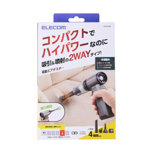 ハンディ掃除機としても使える!コンパクト設計ながら、ハイパワーな風量で玄関まわりのゴミなどを吹き飛ばし、吸引もできる電動エアダスターです。洗えるフィルターで清潔をキープ。モーターに負担がかかるなどの異常を感知すると、自動で停止する安心機能付きです。