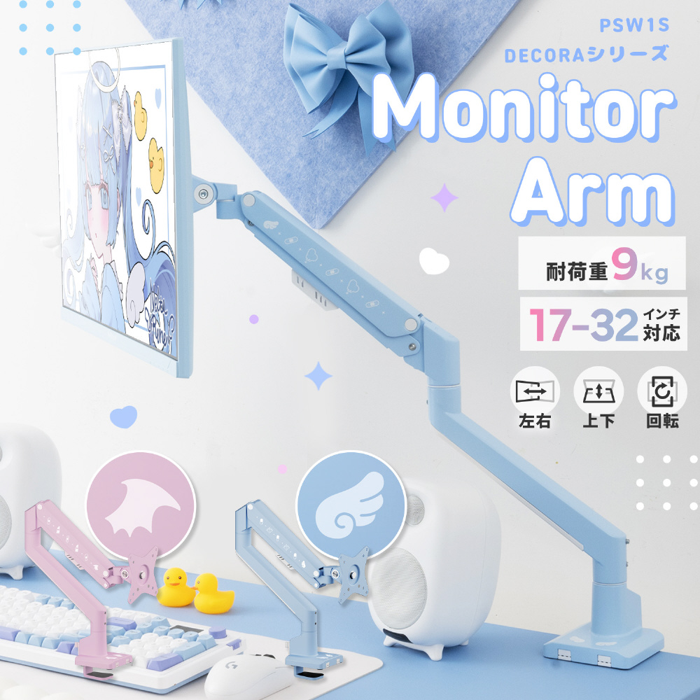 | 商品名 | モニターアーム [1画面 /17〜32インチ] 3関節 PSW1S Decora Pastel Blue Angel PSW1SBLAG-O |