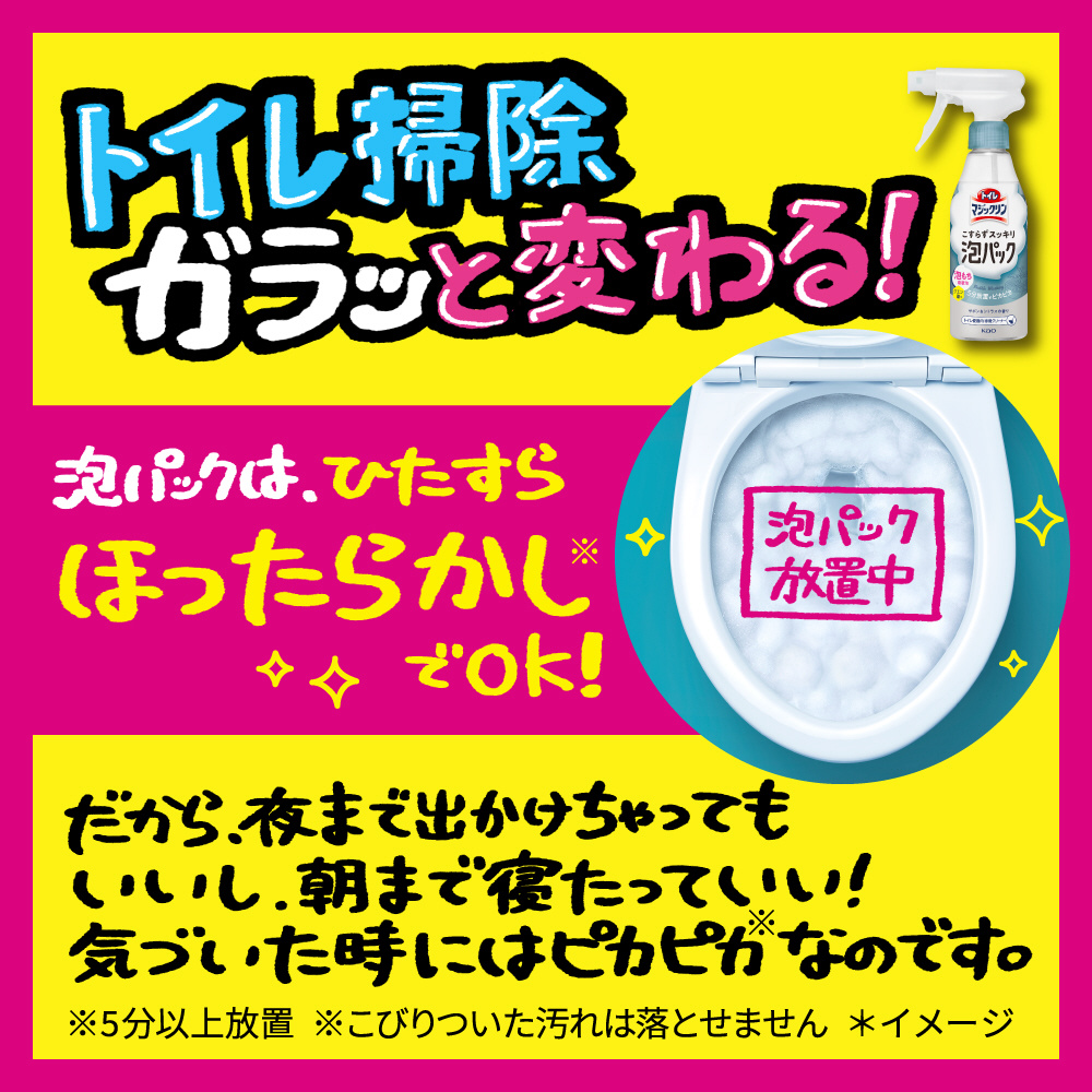 トイレは泡パックでほったらかし掃除!消臭も♪※便器内専用、こびりついた汚れは落とせません
