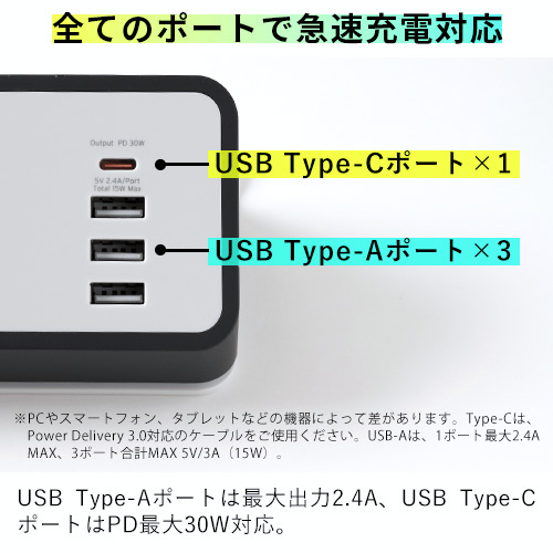 ■全てのポートで急速充電対応