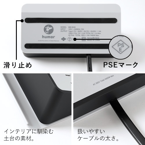 商品名 電源タップ [AC 2Px2 / USB-Ax3 / USB-Cx1] タブレットPC / スマホスタンド ベージュ PXAUTCBE-O [1.5m /2個口 /スイッチ無 /4ポート]