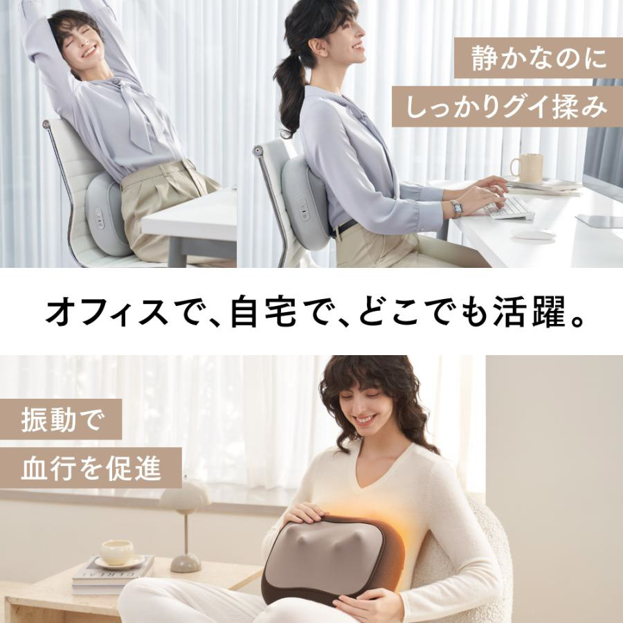 一台で、腰やお腹など全身をケアできる、コンパクトなコードレスマッサージャー。