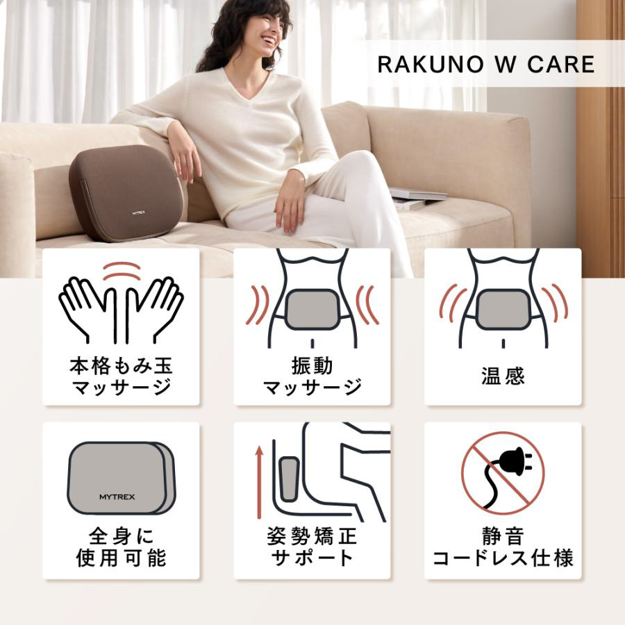 コードレスマッサージクッション 両面ボディマッサージャー ラクーノダブルケア MT-RC-25MBR