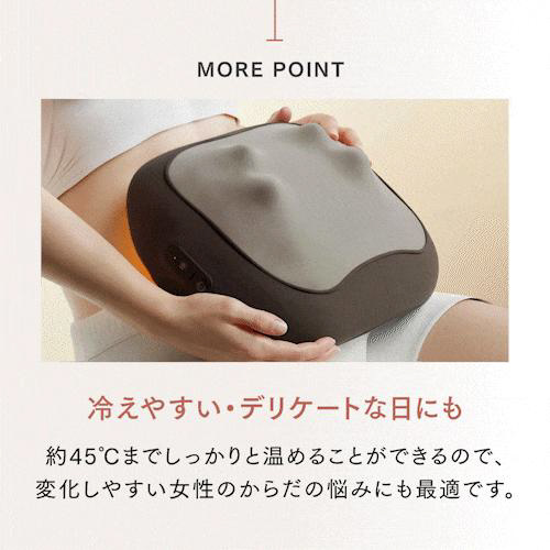 本体表面には振動と温感機能を搭載。血行を促進し、お腹の日常的な不快感をケアします。