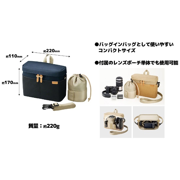 バッグまたはポーチにカメラとレンズを収納してメインのバッグにそのまま収納できる、バッグインバッグタイプです。
