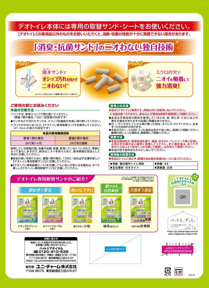 1週間ずっと、ニオイこもらない。引き出し式システムトイレ各社共通 取替え砂