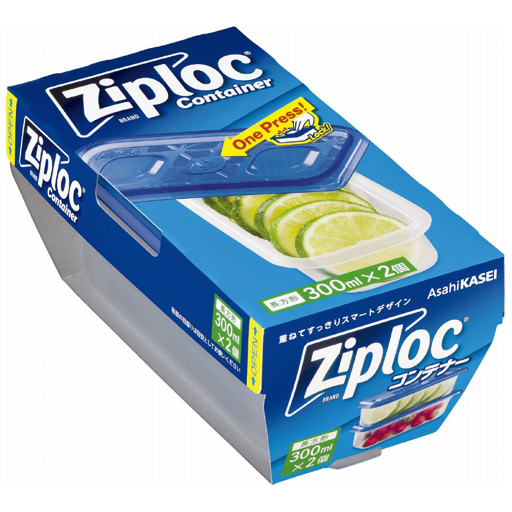 ジップロックコンテナー 長方形 300ml(2個入) 【864】