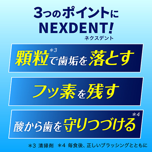 | 成分1 | ソルビット液、水、Wa顆粒、無水ケイ酸、無水ケイ酸、CMC・Na、ヒドロキシエチルセルロース、PEG-12、ラウリル硫酸Na、香料、サッカリンNa、フッ化ナトリウム(フッ素)、塩化セチルピリジニウム(殺菌剤)、酸化Ti、ポリリン酸Na、グリセロリン酸カルシウム |