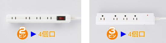 | プラグ/差込口形状 | プラグ形状:2ピン(4個口)/3ピン(4個口) 差し込み口形状:2ピン×4、3ピン×4 |