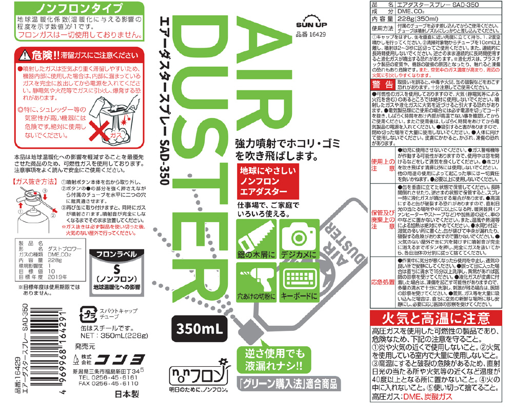 | 商品名 | SUN UP エアーダスタースプレー 350ml SUN UP SAD-350 |