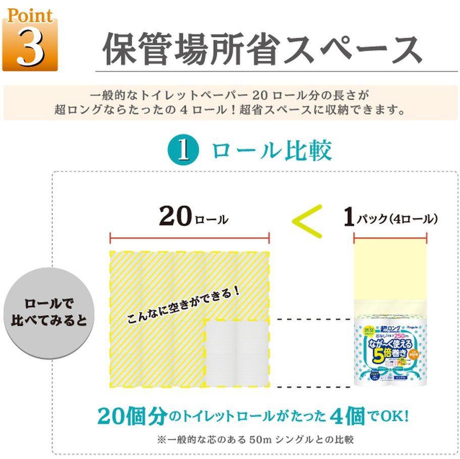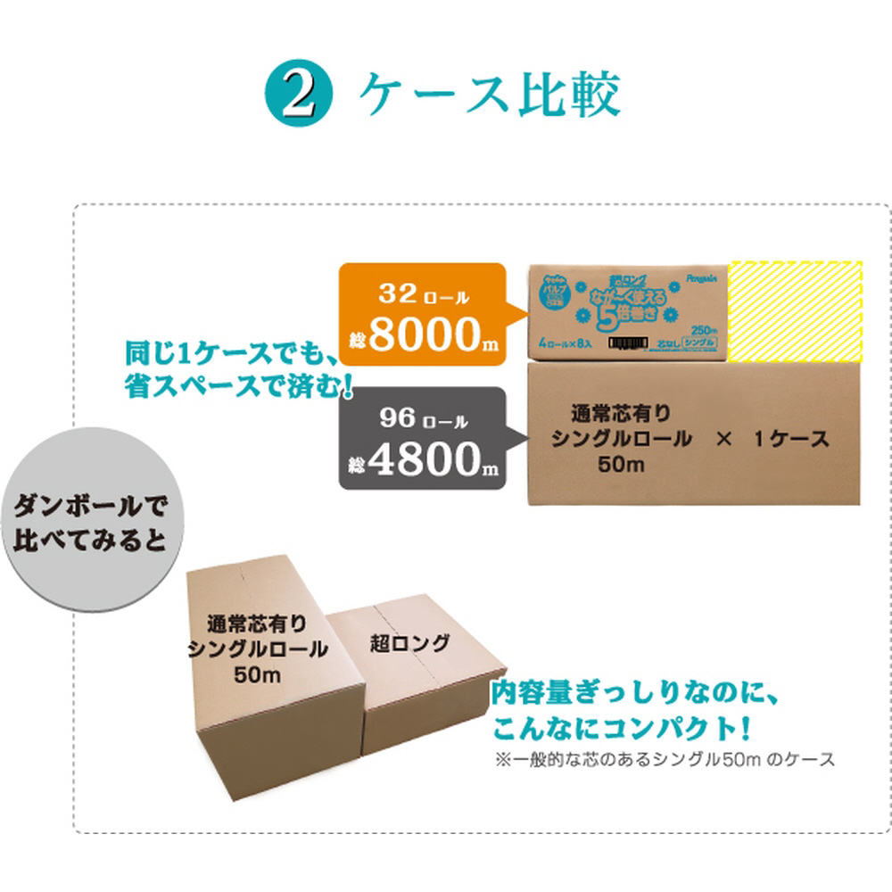 ・通常の5倍長巻き(※)だから、取り替え頻度も収納スペースも大幅に減らせます。