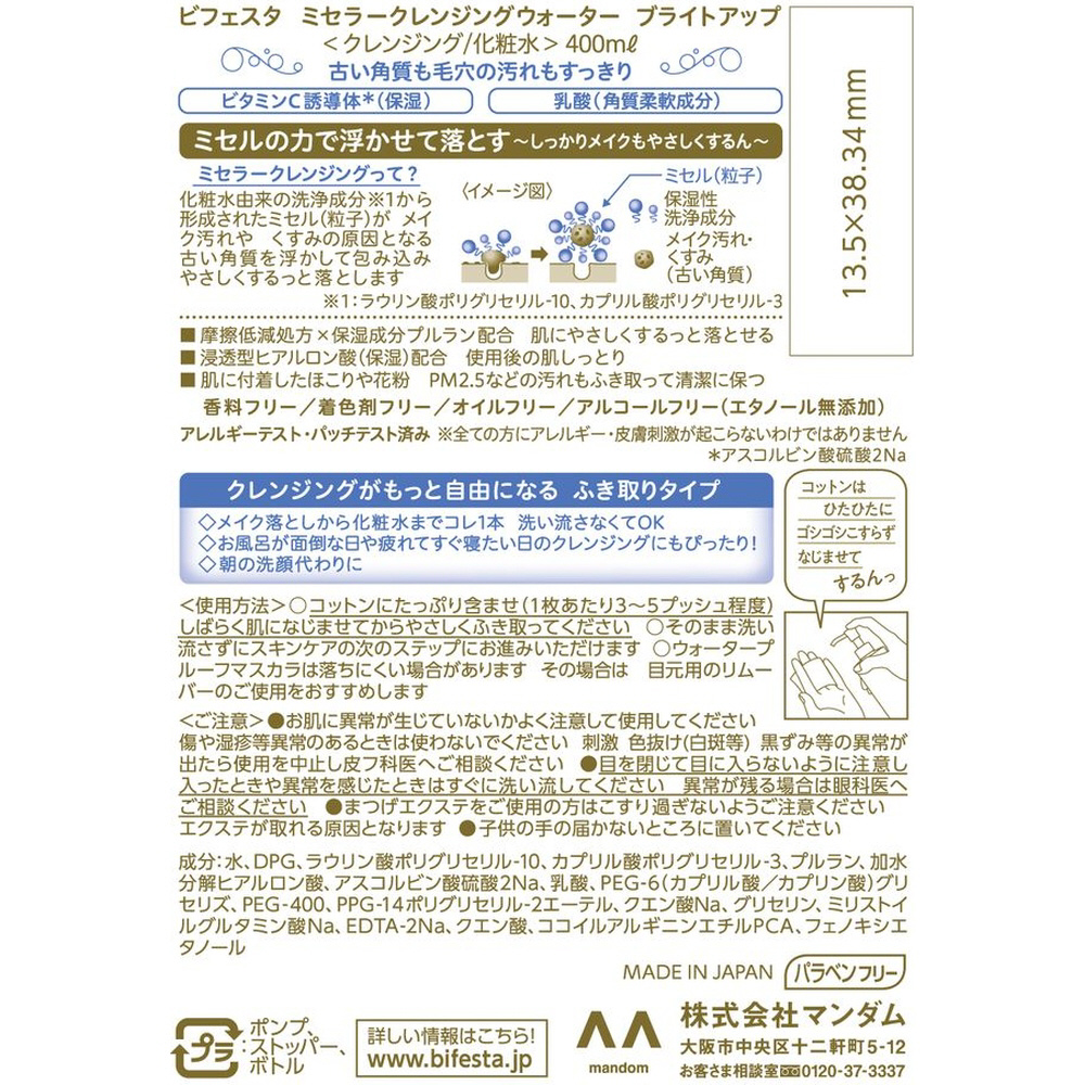 Bifesta(ビフェスタ)ミセラークレンジングウォーター ブライトアップ 400ml ブライトアップ