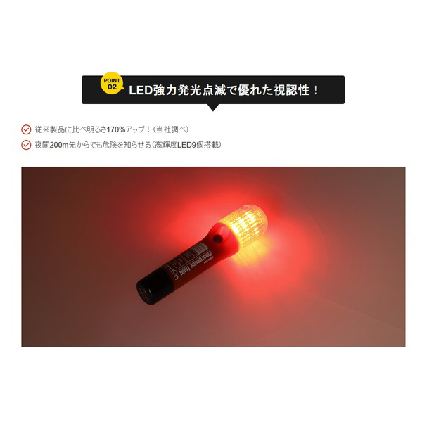 ●赤色LEDがピカピカ点滅して夜間200m先から危険を知らせる