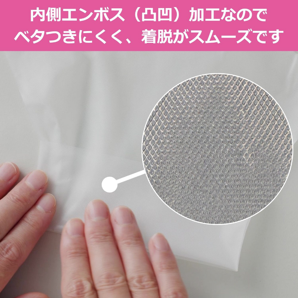 【食品衛生法適合】調理にもお使いいただけます。内側エンボス(凹凸)加工なので、ベタつきにくく、着脱がスムーズです。