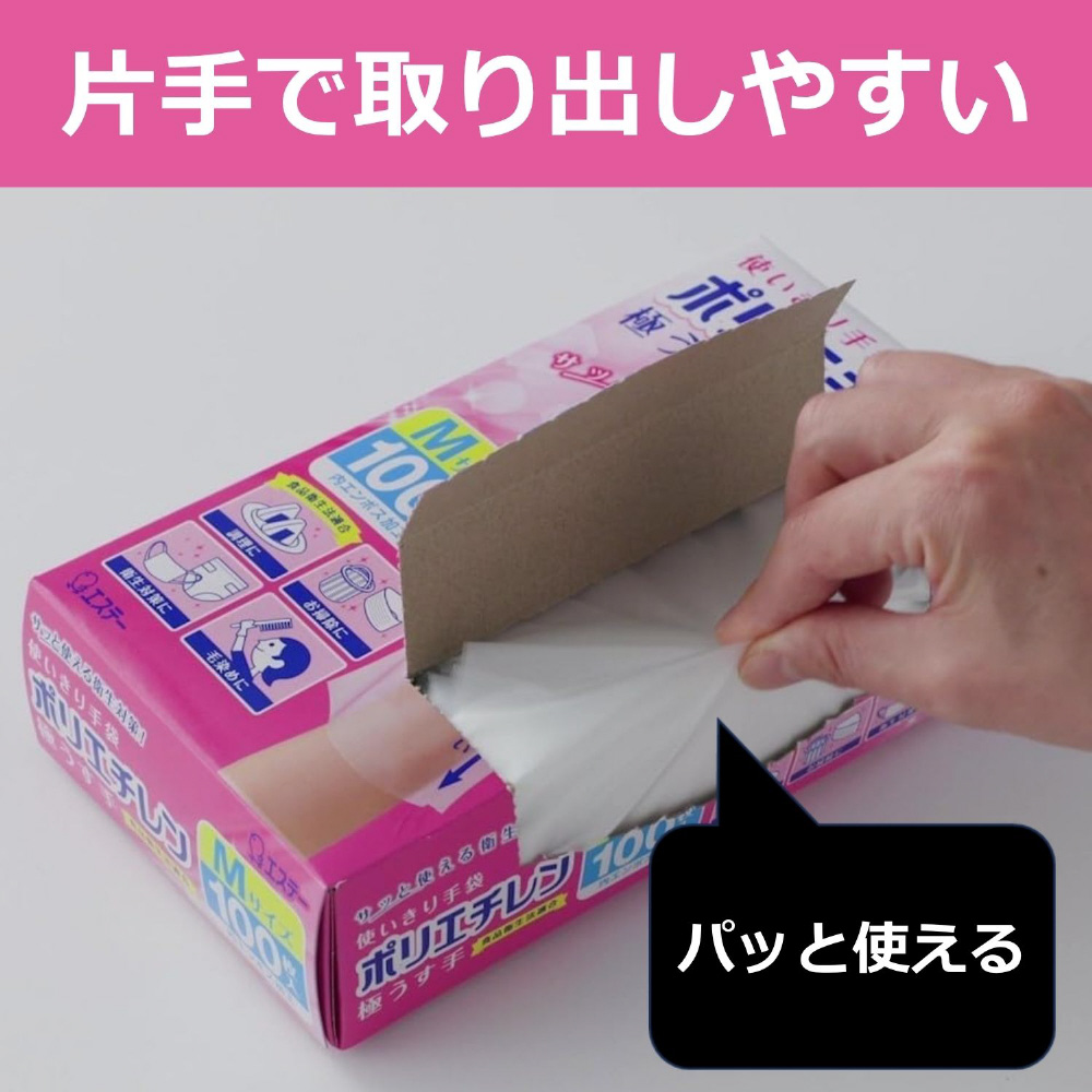 使いきり手袋 ポリエチレン 極うす手 Sサイズ 半透明 100枚 [使い捨て手袋 食品衛生法適合 左右両用タイプ 調理 掃除 衛生対策 毛染め] 半透明