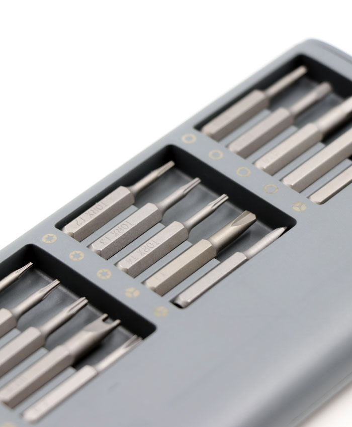 アルミ薄型ポータブルケース1本のドライバーと30種のビットすべてをセットすることができます。