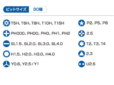■マグネット内蔵ドライバーと30種の高硬度ビット