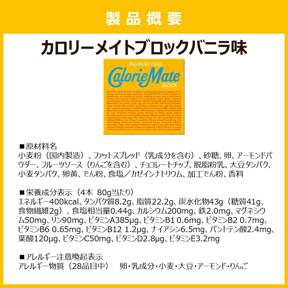 | 商品名 | カロリーメイト ブロック 4本入 バニラ味 |