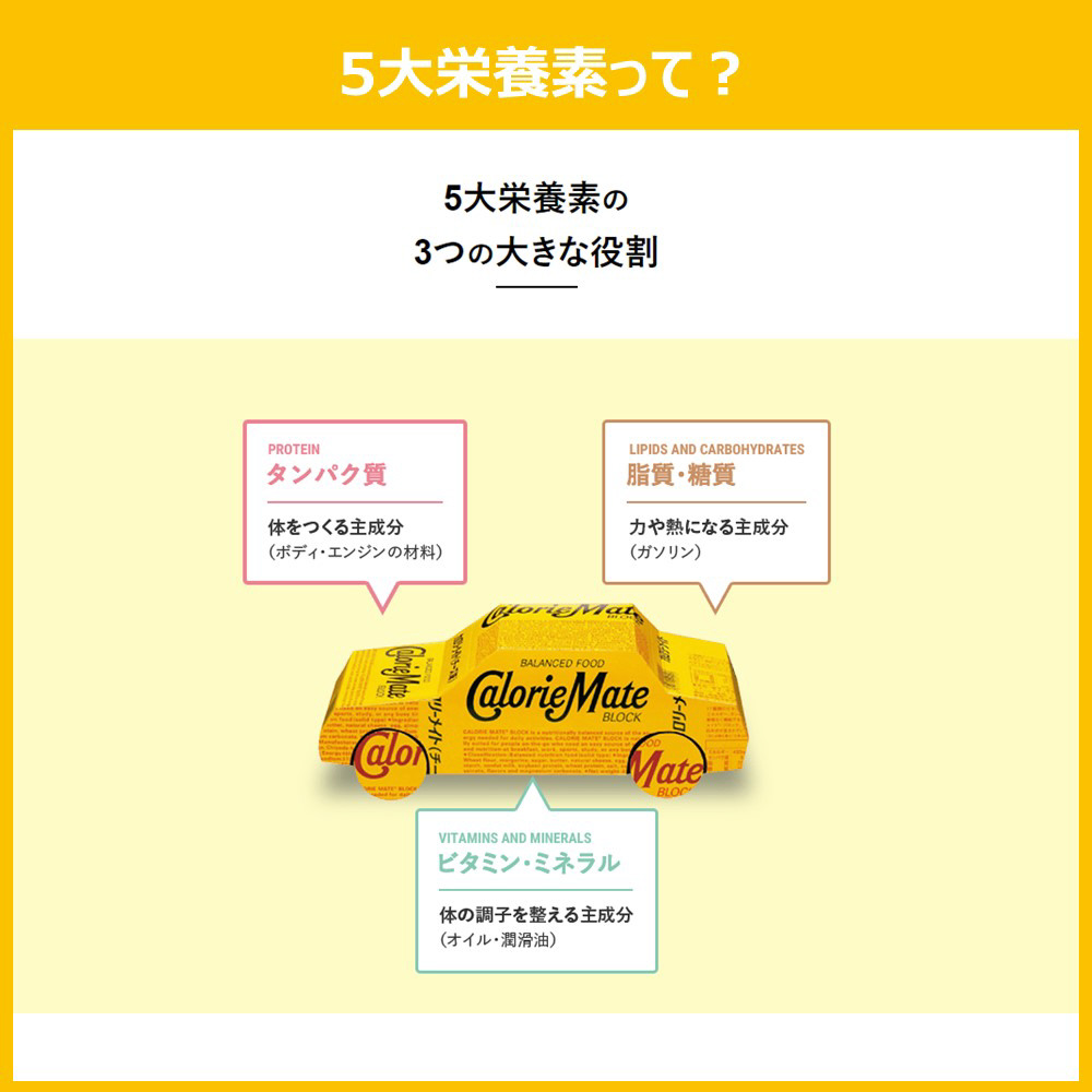 携帯や保存に便利なブロックで、5大栄養素をいつでもどこでも手軽に摂取