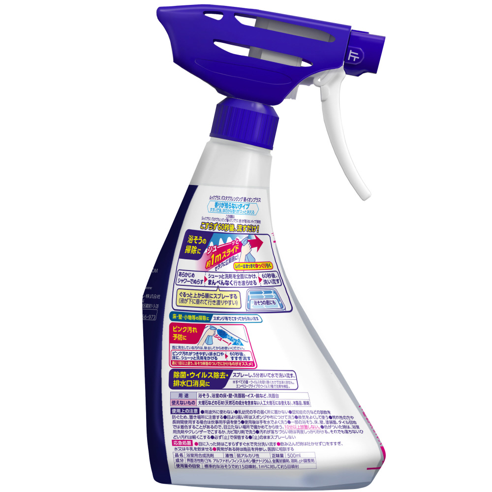 ●床や排水口などピンク汚れがつきやすいところに、シューーーッとかけて60秒後に流すだけで、ピンク汚れの原因微生物を除去、こすらずにピンク汚れ予防ができる。