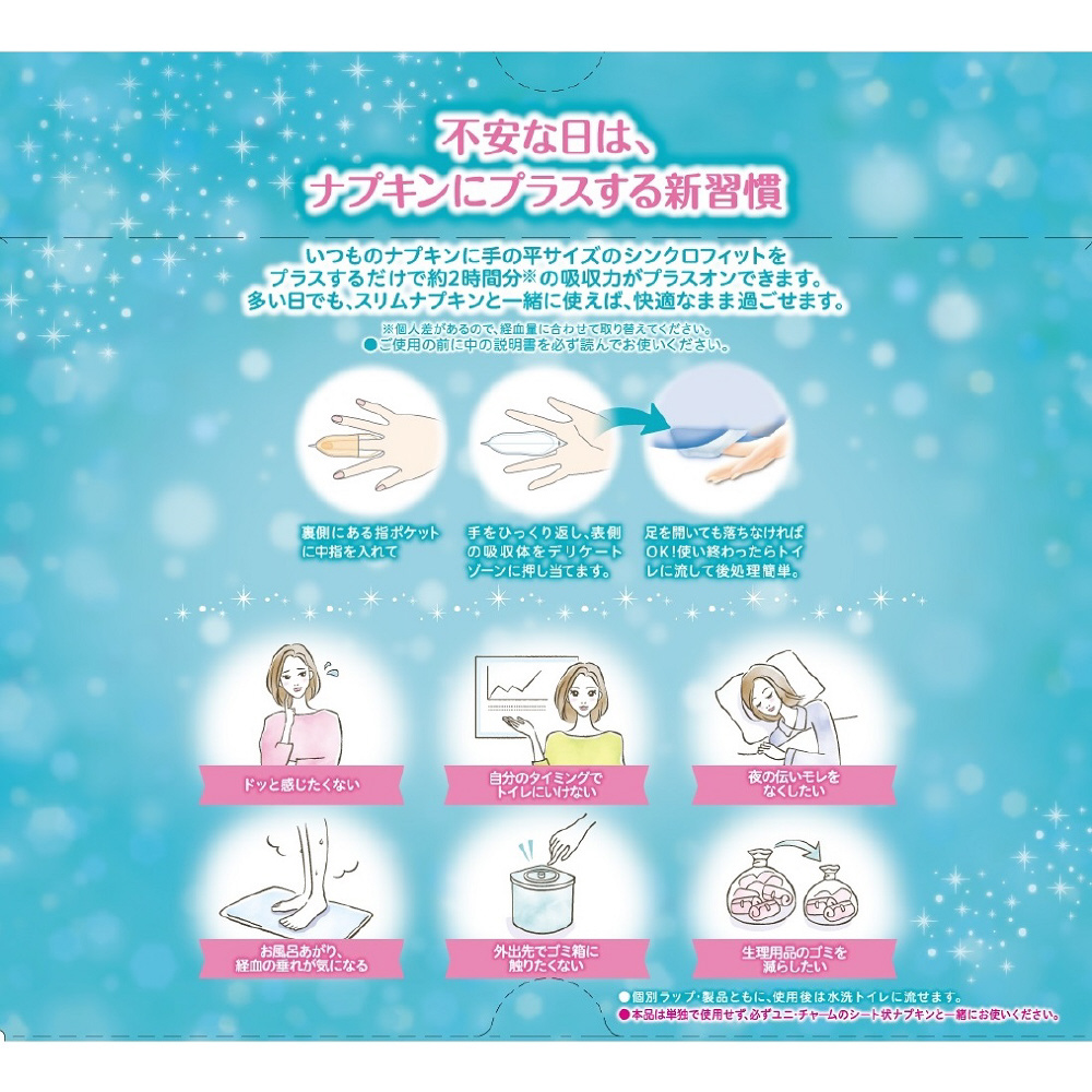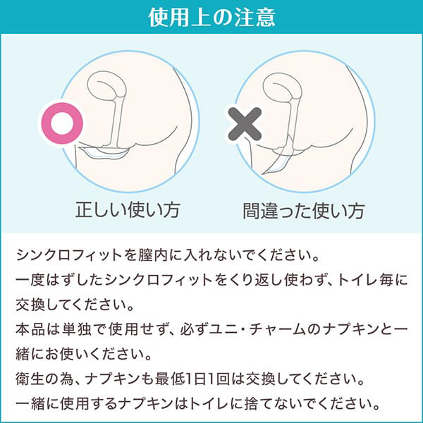 シンクロフィットだけ交換してらくちん。初めはなれなくても、2〜3コ使うと手早く上手に使えるようになります。ナプキンがきれいなままならシンクロフィットだけ交換して、トイレに流せば後処理簡単です。